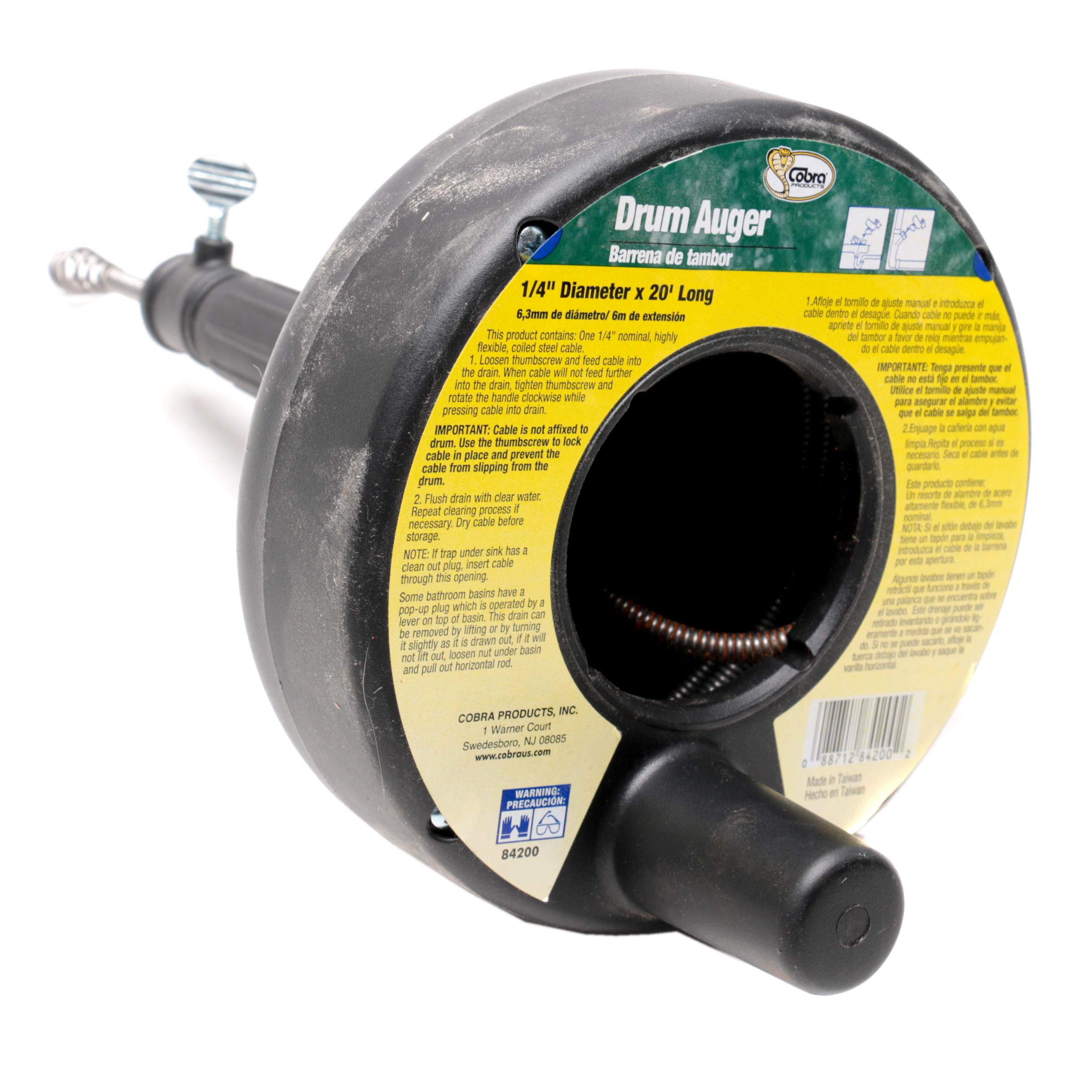Cobra Drum Auger W 1 4 X 15 Cable With Open Hook Walmart Com