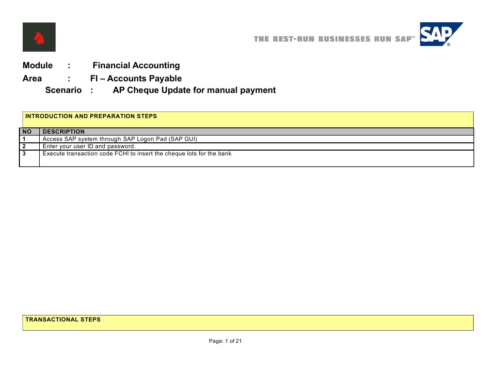 Ff68 Sap Tcode Manual Check Deposit Transaction Transaction Code